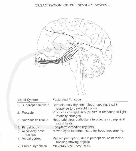 In some lower vertebrates the Epiphysis Cerebri - Pineal Gland - has a well-developed eye-like structure; in others though not organized as an eye, if functions as a light receptor. In lower vertebrates, the pineal gland has an eye like structure and it functions as a light receptor and is considered by some to be the evolutionary forerunner of the modern eye.